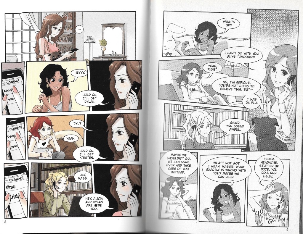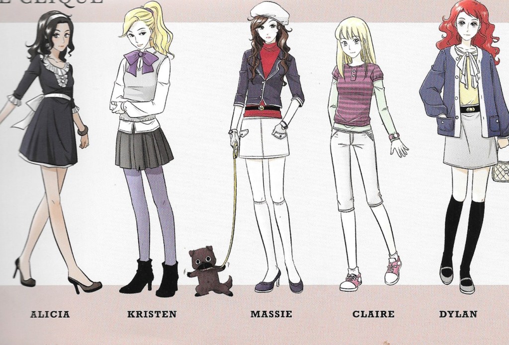 Meet our main characters: Massie, Claire (6:15), Alicia, Dylan, and Kristen (18:20).